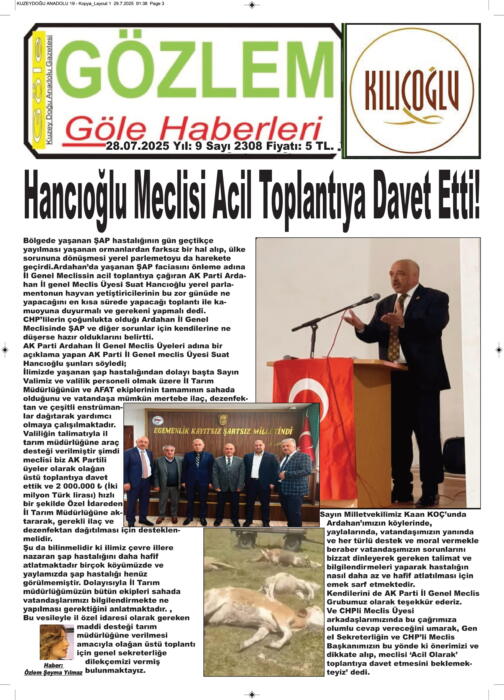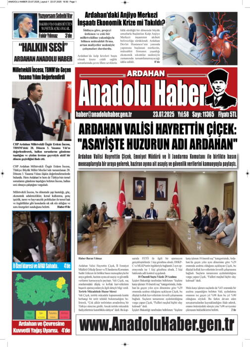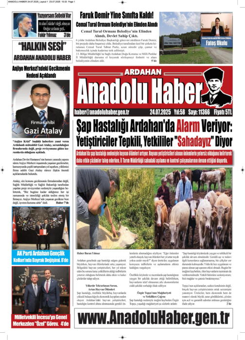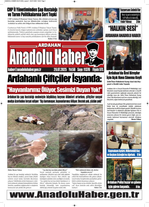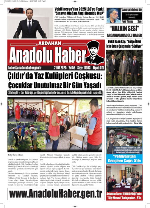 ARDAHAN’I HER GÜN YAZAN ANADOLU E-HABER GAZETESİ 20 TEMMUZ 2025