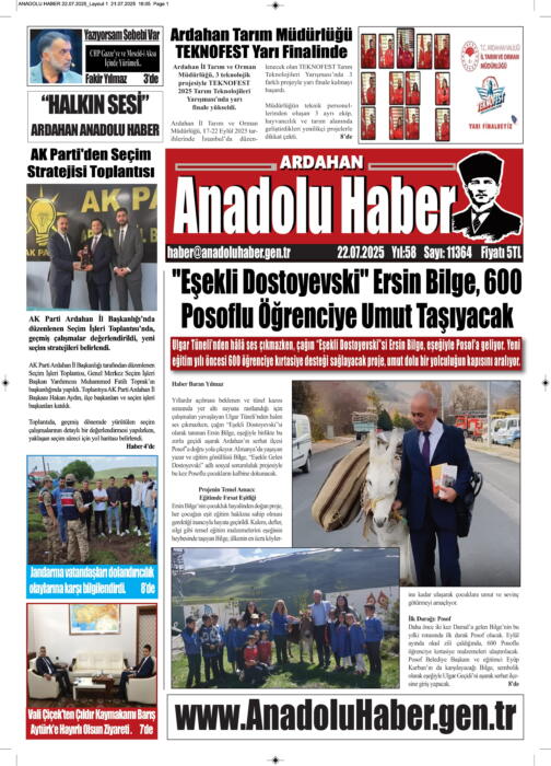 ARDAHAN’I HER GÜN YAZAN ANADOLU E-HABER GAZETESİ 22 TEMMUZ 2025