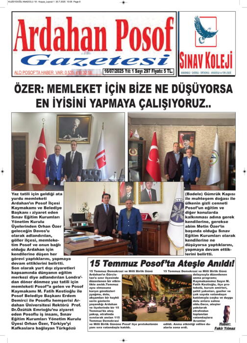 ARDAHAN’I HER GÜN YAZAN ANADOLU E-HABER GAZETESİ 16 TEMMUZ 2025