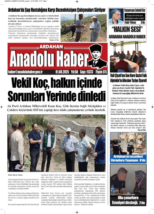 ARDAHAN’I HER GÜN YAZAN ANADOLU E-HABER GAZETESİ 01 AĞUSTOS 2025