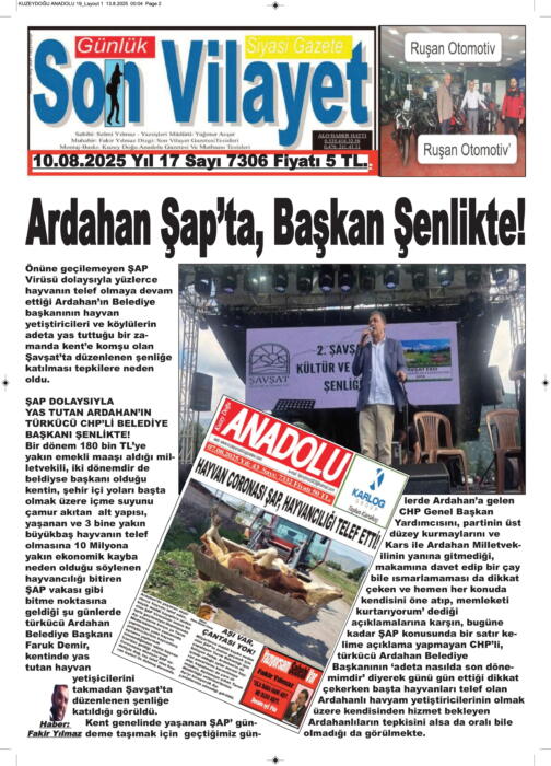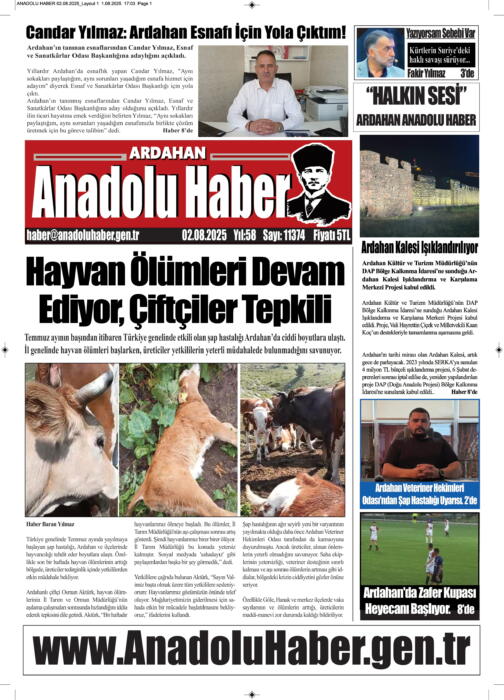 ARDAHAN’I HER GÜN YAZAN ANADOLU E-HABER GAZETESİ 02 AĞUSTOS 2025