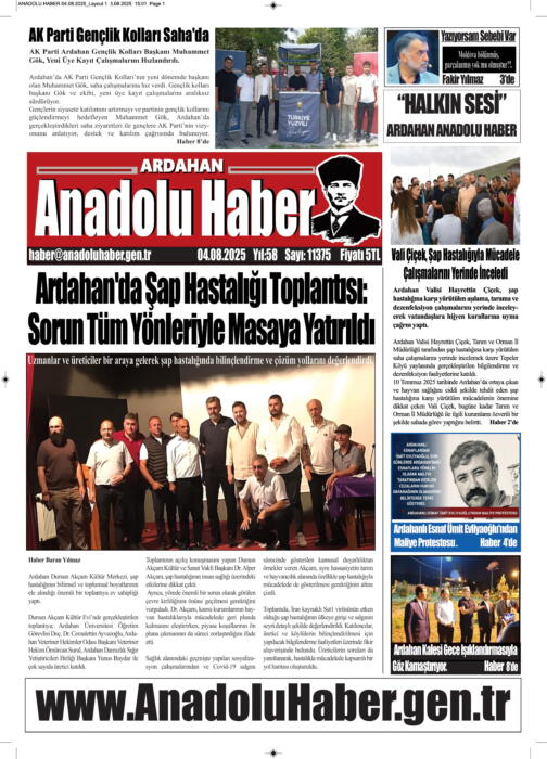 ARDAHAN’I HER GÜN YAZAN ANADOLU E-HABER GAZETESİ 04 AĞUSTOS 2025