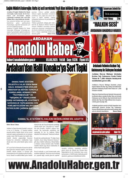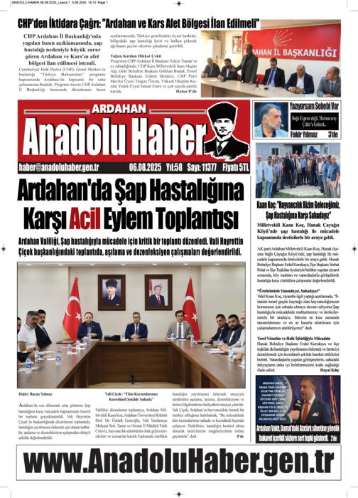 ARDAHAN’I HER GÜN YAZAN ANADOLU E-HABER GAZETESİ 05 AĞUSTOS 2025