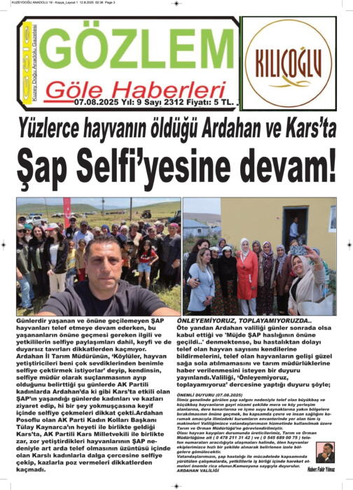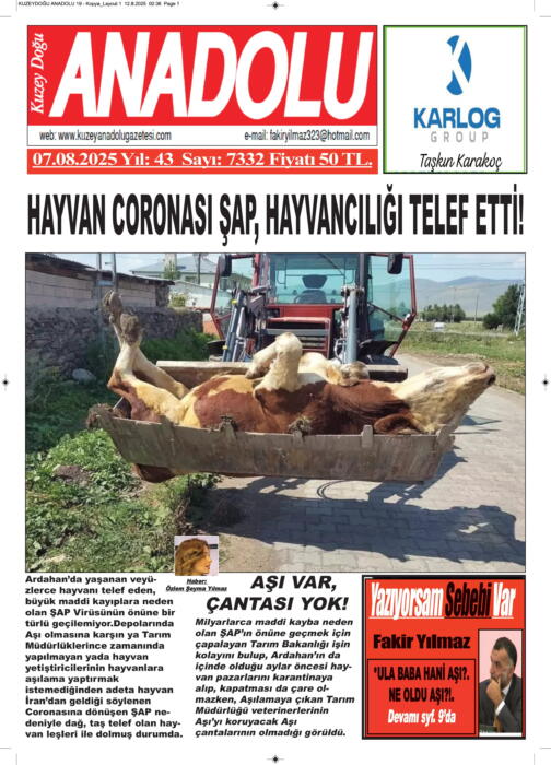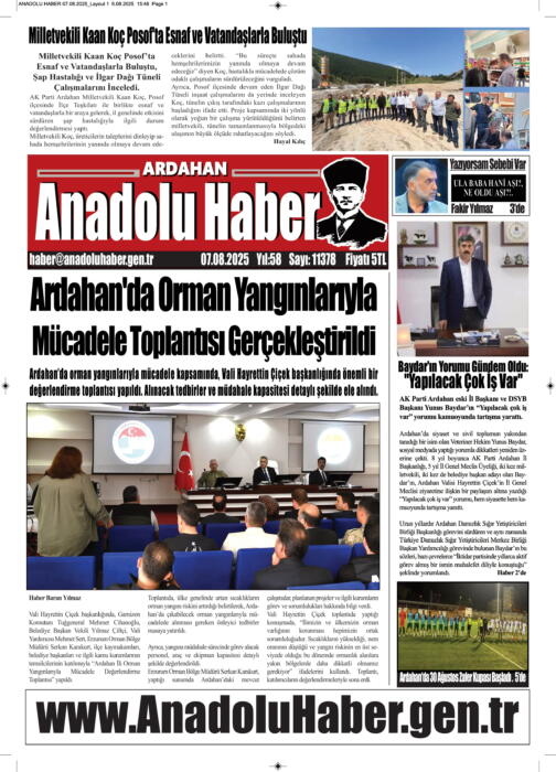 ARDAHAN’I HER GÜN YAZAN ANADOLU E-HABER GAZETESİ 07 AĞUSTOS 2025