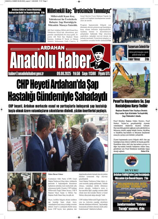 ARDAHAN’I HER GÜN YAZAN ANADOLU E-HABER GAZETESİ 09 AĞUSTOS 2025