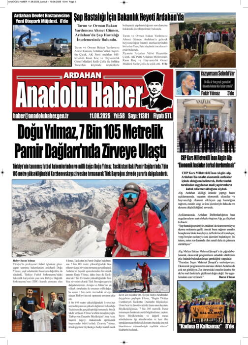 ARDAHAN’I HER GÜN YAZAN ANADOLU E-HABER GAZETESİ 11 AĞUSTOS 2025