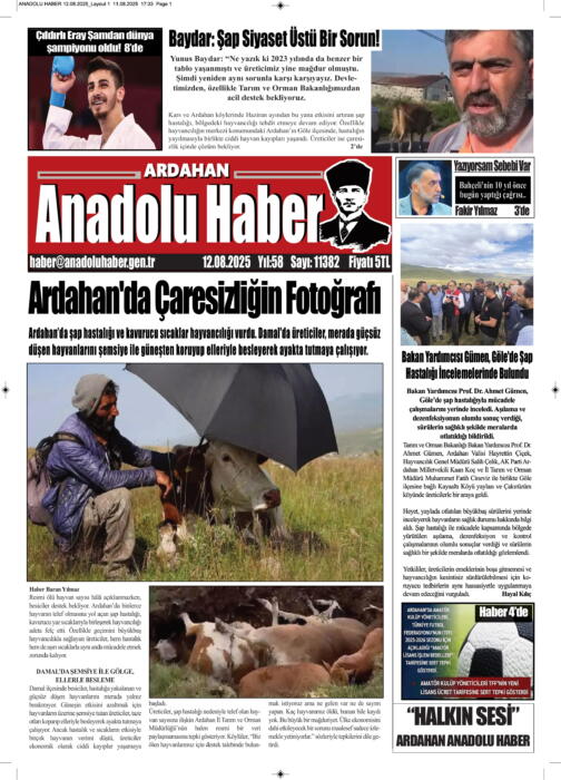 ARDAHAN’I HER GÜN YAZAN ANADOLU E-HABER GAZETESİ 12 AĞUSTOS 2025