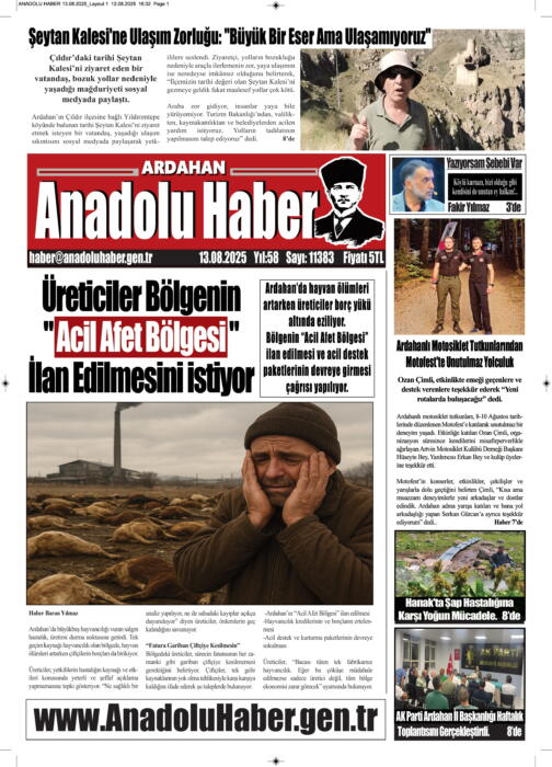 ARDAHAN’I HER GÜN YAZAN ANADOLU E-HABER GAZETESİ 13 AĞUSTOS 2025