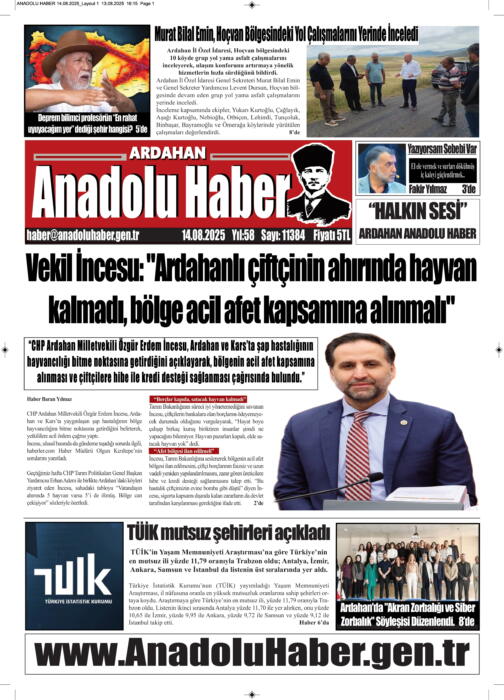 ARDAHAN’I HER GÜN YAZAN ANADOLU E-HABER GAZETESİ 14 AĞUSTOS 2025