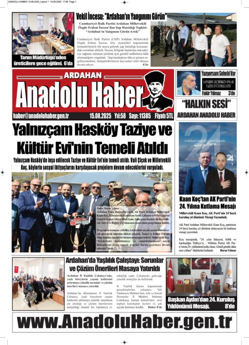 ARDAHAN’I HER GÜN YAZAN ANADOLU E-HABER GAZETESİ 15 AĞUSTOS 2025
