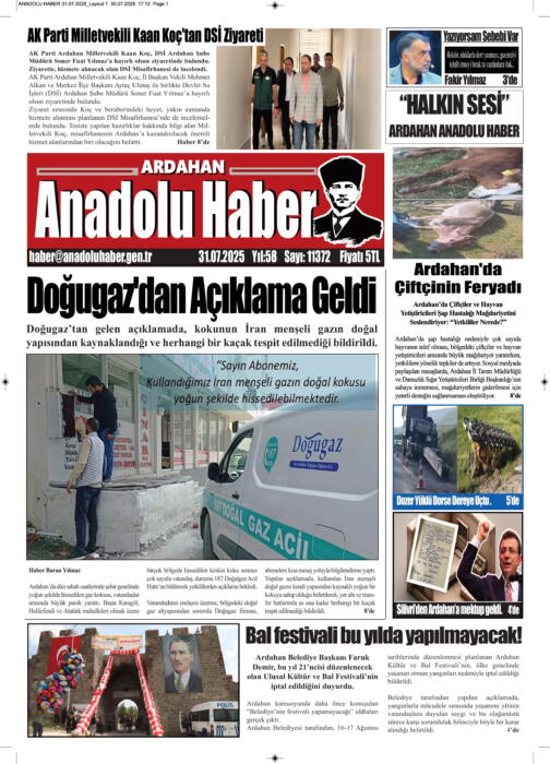 ARDAHAN’I HER GÜN YAZAN ANADOLU E-HABER GAZETESİ 31 HAZİRAN 2025